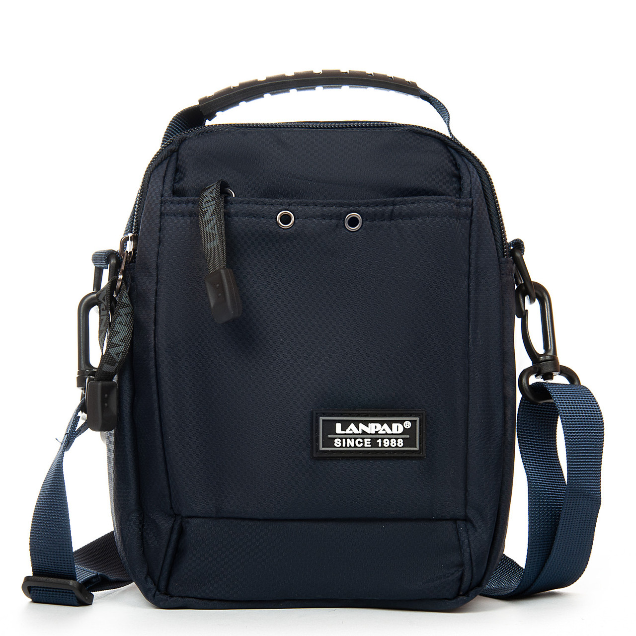 Чоловіча сумка Lanpad. Два відділення, закриваються на блискавку. Усередині відділень є кишеня на блискавці та відкрита кишеня. На фасаді є кишені на блискавці. На зворотному боці є кріплення на пояс. У комплекті регульований плечовий ремінь.